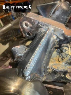 The Rampt Customs Knuckle Gusset kits are a little different from others. Instead of some chunky 10-12mm plate welded to the bottom of the knuckleball, this kit is designed to give maximum support for the axle housing.